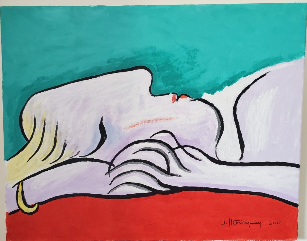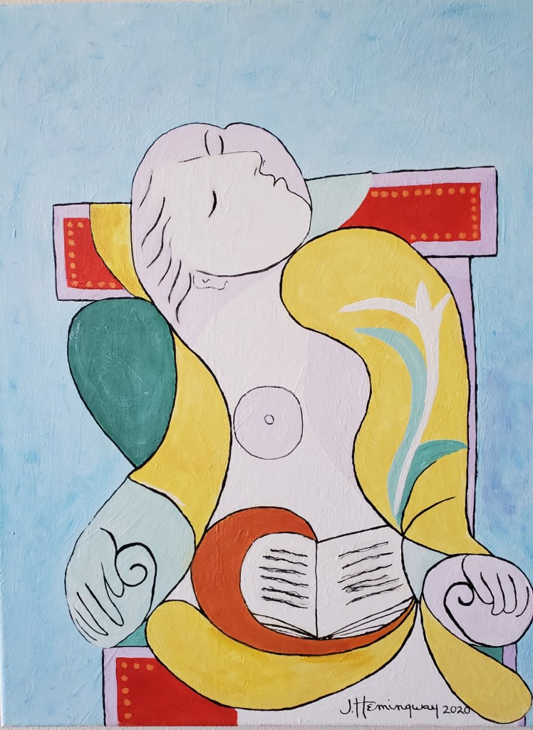 Jackie enjoys painting her versions of classic paintings by artists like Pablo Picasso and Vincent Van Gogh among others.